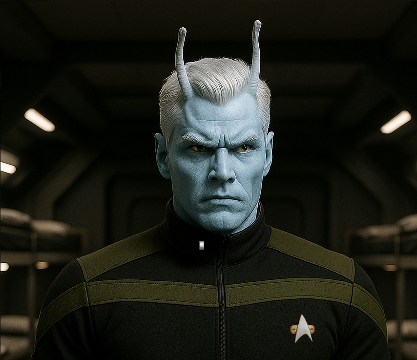 | Physical Description | Kes is a rather large and imposing Andorian. He keeps his hair short and combed back. It’s been years since he tried growing a proper beard so he keeps clean shaven as per marine regulations. While not toned, he does take pride in staying in shape. |